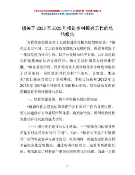 / 镇关于2023至2025年推进乡村振兴工作的总结报告