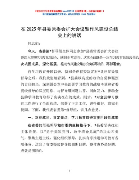 / 在2025年县委常委会扩大会议暨作风建设总结会上的讲话