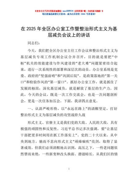 / 在2025年全区办公室工作暨整治形式主义为基层减负会议上的讲话