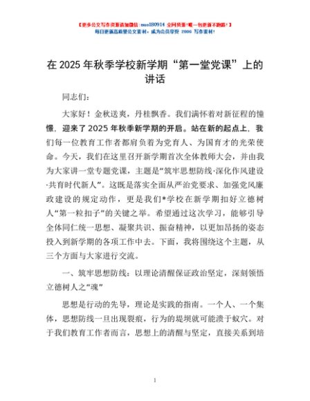 / 在2025年秋季学校新学期“第一堂党课”上的讲话