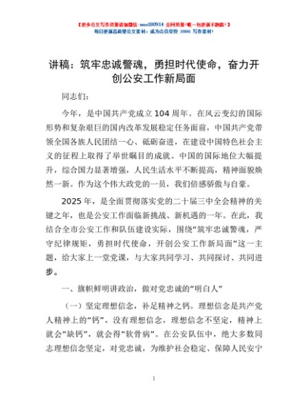 / 讲稿:筑牢忠诚警魂,勇担时代使命,奋力开创公安工作新局面