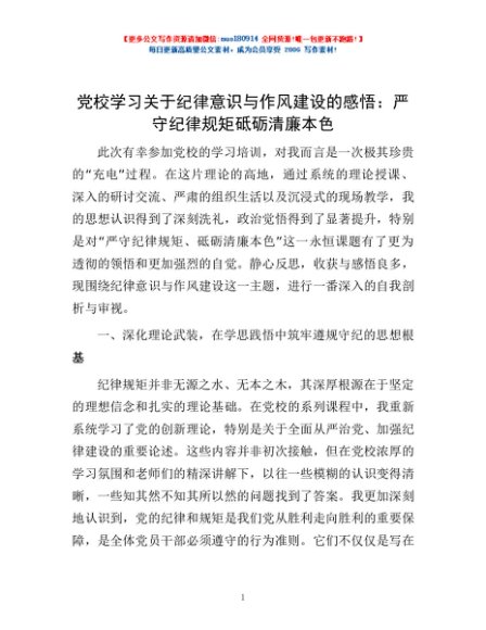 / 党校学习关于纪律意识与作风建设的感悟:严守纪律规矩 砥砺清廉本色