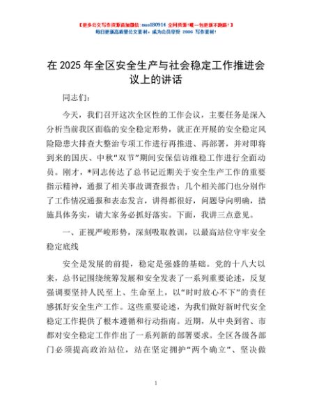 / 在2025年全区安全生产与社会稳定工作推进会议上的讲话