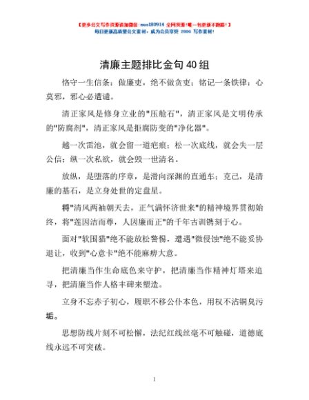 / 清廉主题排比金句40组