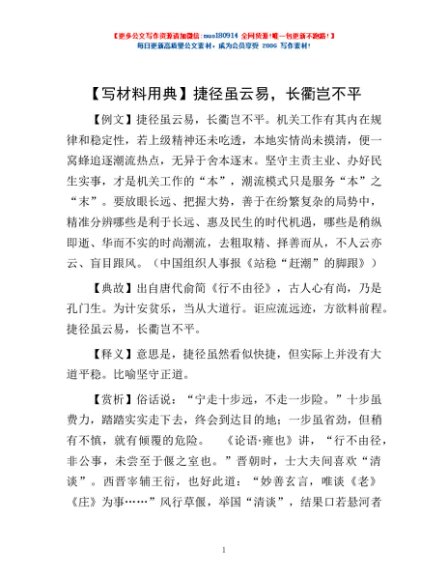 / 【写材料用典】捷径虽云易,长衢岂不平