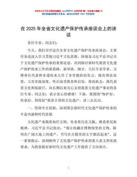 / 在2025年全省文化遗产保护传承座谈会上的讲话