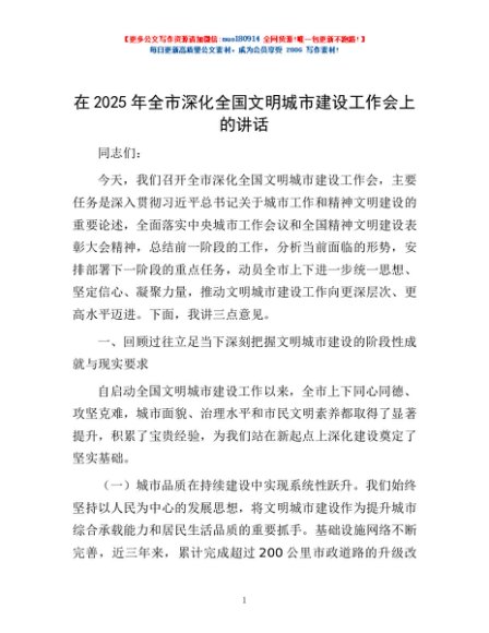 / 在2025年全市深化全国文明城市建设工作会上的讲话