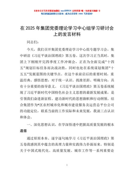 / 在2025年集团党委理论学习中心组学习研讨会上的发言材料