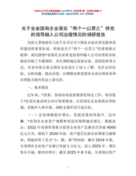 / 关于全省国有企业落实“两个一以贯之”将党的领导融入公司治理情况的调研报告