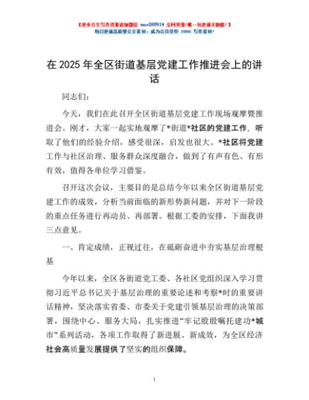 / 在2025年全区街道基层党建工作推进会上的讲话