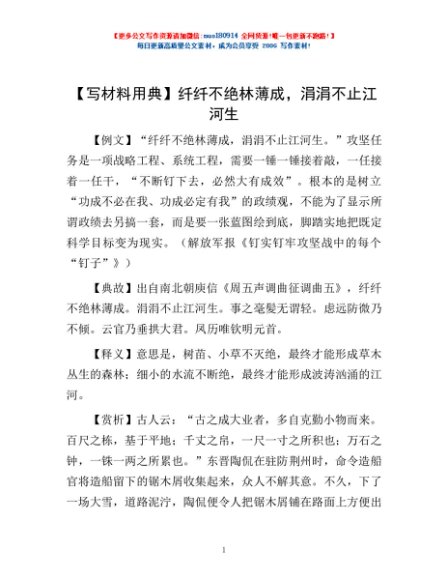 【写材料用典】纤纤不绝林薄成,涓涓不止江河生