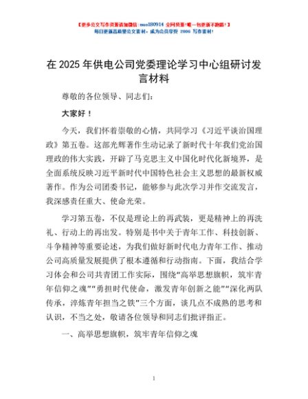 / 在2025年供电公司党委理论学习中心组研讨发言材料