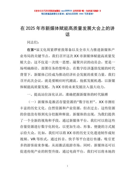 / 在2025年市新媒体赋能高质量发展大会上的讲话