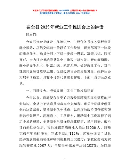 / 在全县2025年就业工作推进会上的讲话