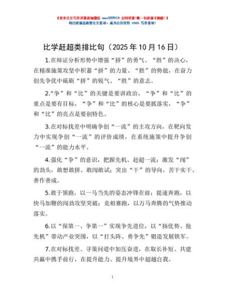 / 比学赶超类排比句(2025年10月16日)