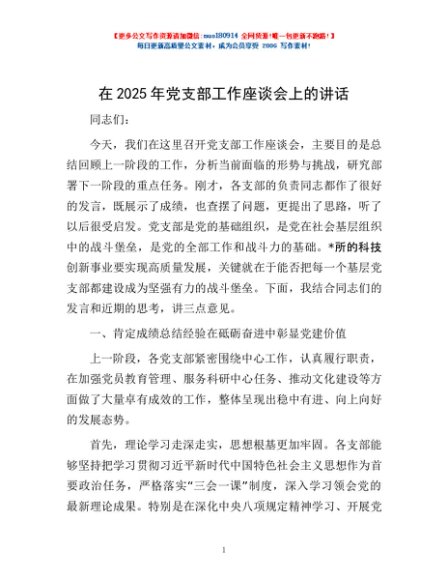 / 在2025年党支部工作座谈会上的讲话