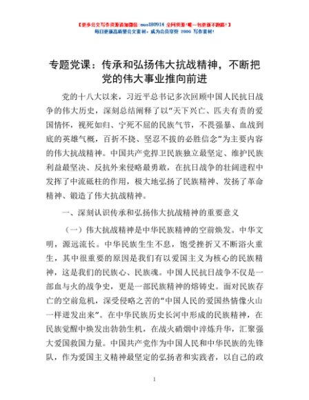 / 专题党课:传承和弘扬伟大抗战精神,不断把党的伟大事业推向前进