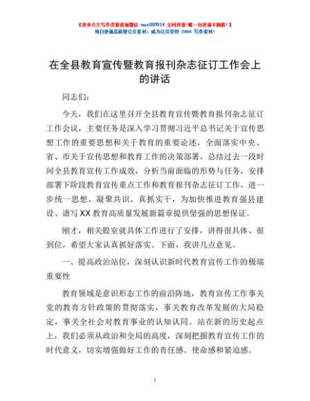 / 在全县教育宣传暨教育报刊杂志征订工作会上的讲话