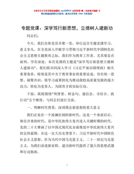 / 专题党课:深学笃行新思想,立德树人建新功