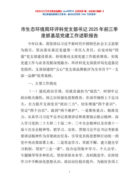 / 市生态环境局环评科党支部书记2025年前三季度抓基层党建工作述职报告