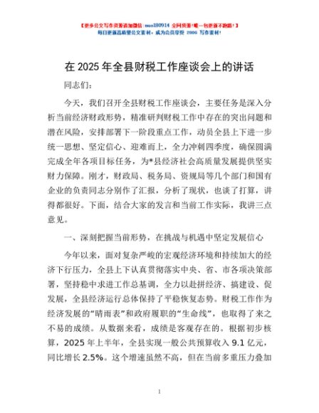 / 在2025年全县财税工作座谈会上的讲话