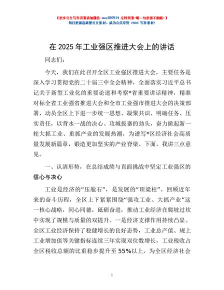 / 在2025年工业强区推进大会上的讲话
