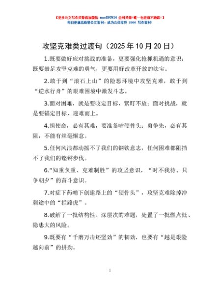 攻坚克难类过渡句(2025年10月20日)