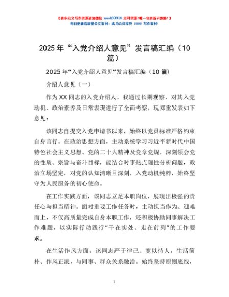 / 2025年“入党介绍人意见”发言稿汇编(10篇)