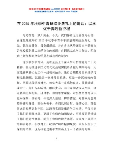 / 在2025年秋季中青班结业典礼上的讲话:以学促干 奔赴新征程