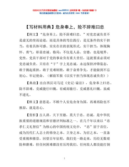 【写材料用典】危身奉上,险不辞难曰忠