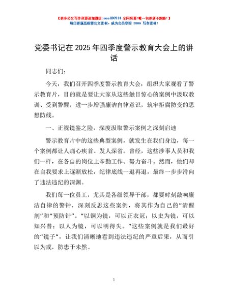 / 党委书记在2025年四季度警示教育大会上的讲话