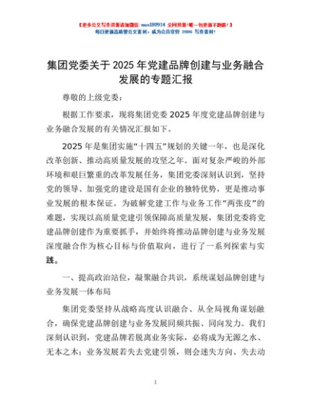 / 集团党委关于2025年党建品牌创建与业务融合发展的专题汇报