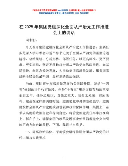 / 在2025年集团党组深化全面从严治党工作推进会上的讲话