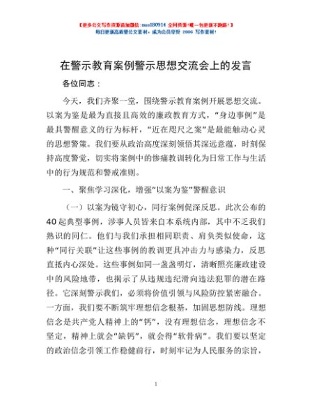 / 在警示教育案例警示思想交流会上的发言