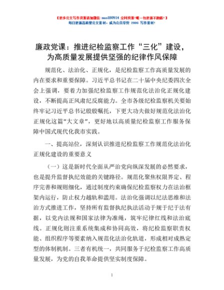 / 廉政党课:推进纪检监察工作“三化”建设,为高质量发展提供坚强的纪律作风保障