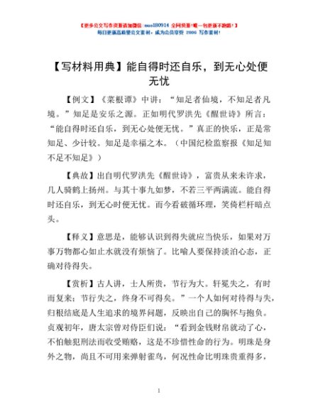 / 【写材料用典】能自得时还自乐,到无心处便无忧