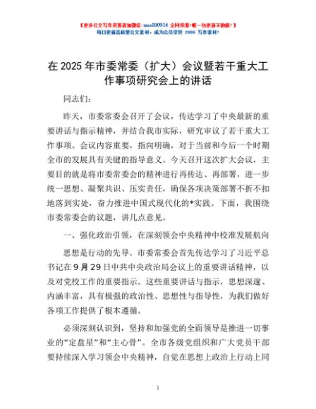 / 在2025年市委常委(扩大)会议暨若干重大工作事项研究会上的讲话