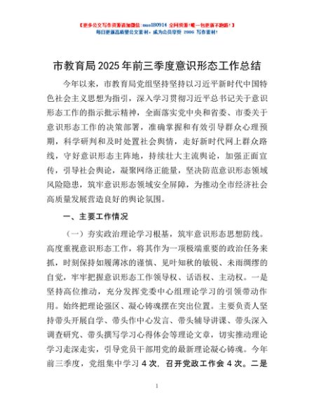 / 市教育局2025年前三季度意识形态工作总结