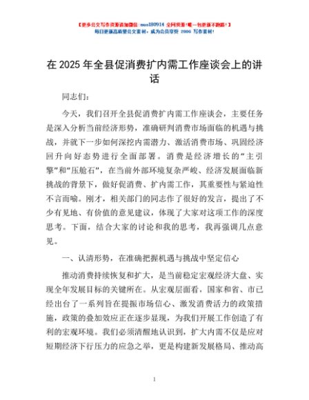 / 在2025年全县促消费扩内需工作座谈会上的讲话