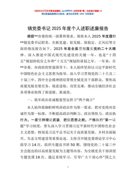 / 镇党委书记2025年度个人述职述廉报告