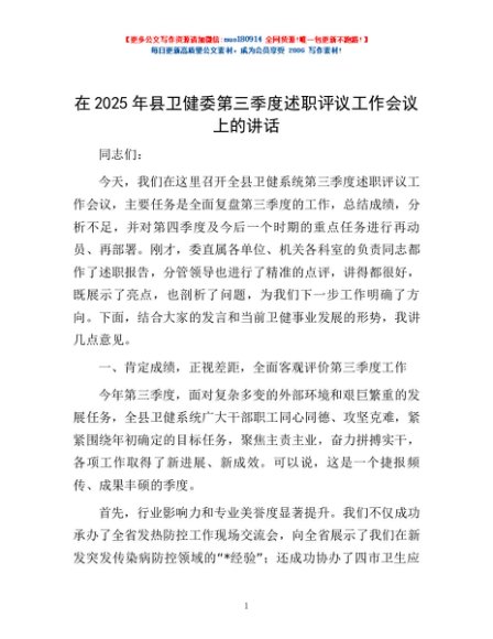 / 在2025年县卫健委第三季度述职评议工作会议上的讲话