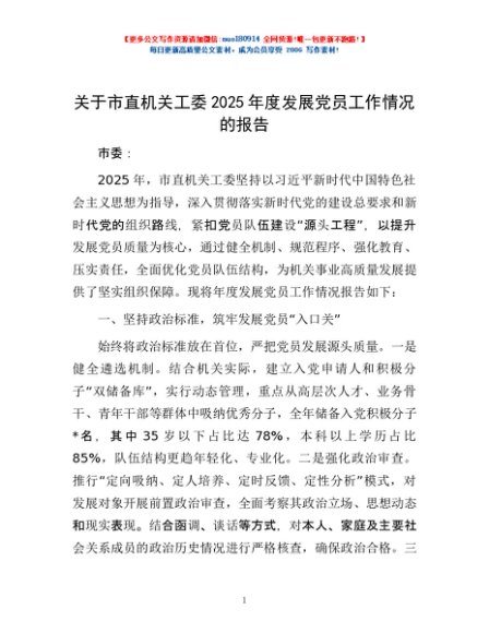 / 关于市直机关工委2025年度发展党员工作情况的报告