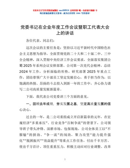 / 党委书记在企业年度工作会议暨职工代表大会上的讲话