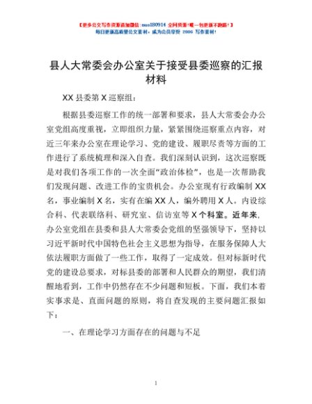/ 县人大常委会办公室关于接受县委巡察的汇报材料