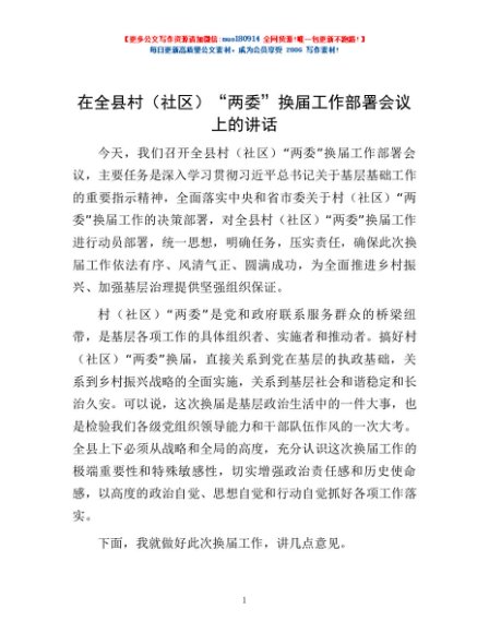 / 在全县村(社区)“两委”换届工作部署会议上的讲话