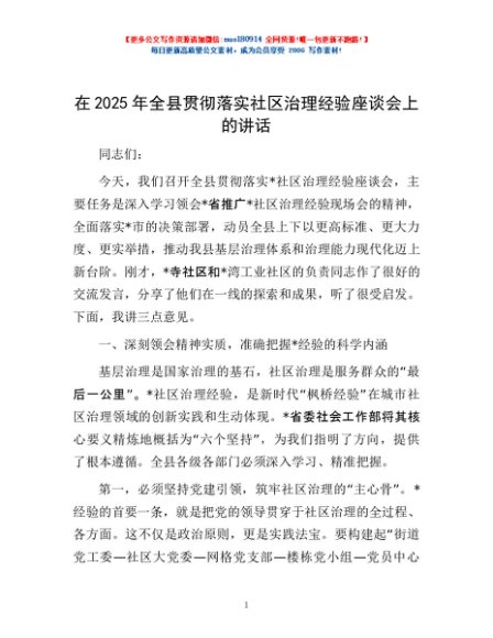 / 在2025年全县贯彻落实社区治理经验座谈会上的讲话