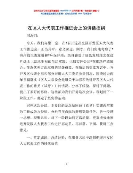 / 在区人大代表工作推进会上的讲话提纲