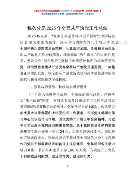 / 税务分局2025年全面从严治党工作总结