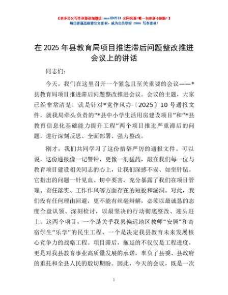 / 在2025年县教育局项目推进滞后问题整改推进会议上的讲话