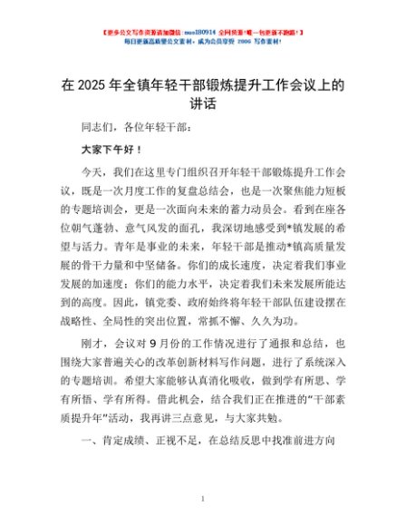 / 在2025年全镇年轻干部锻炼提升工作会议上的讲话